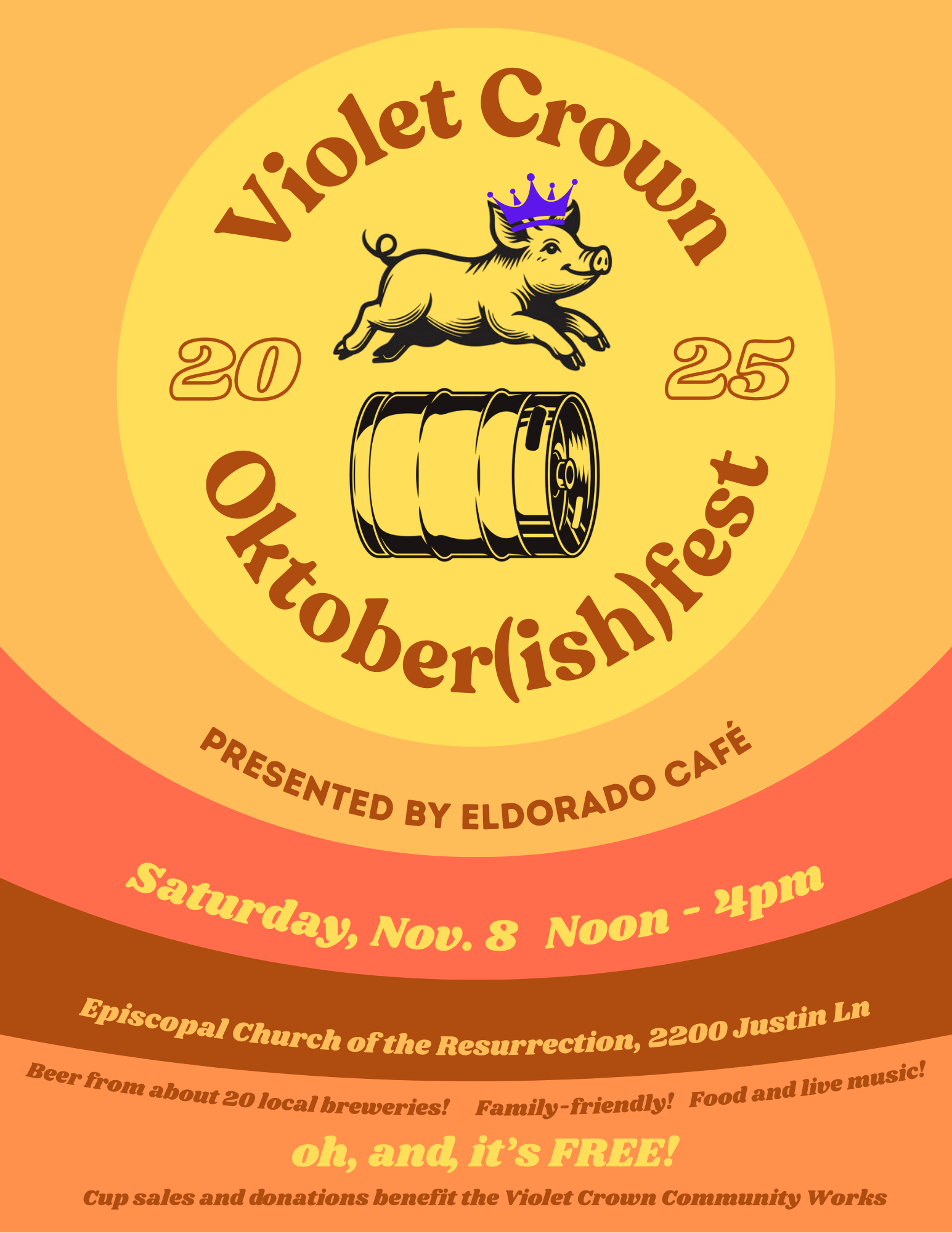 Octoberfest 2025 is coming on Saturday, November 8th, from noon to 4pm. Presented by our neighborhood friends at Eldorado Cafe.